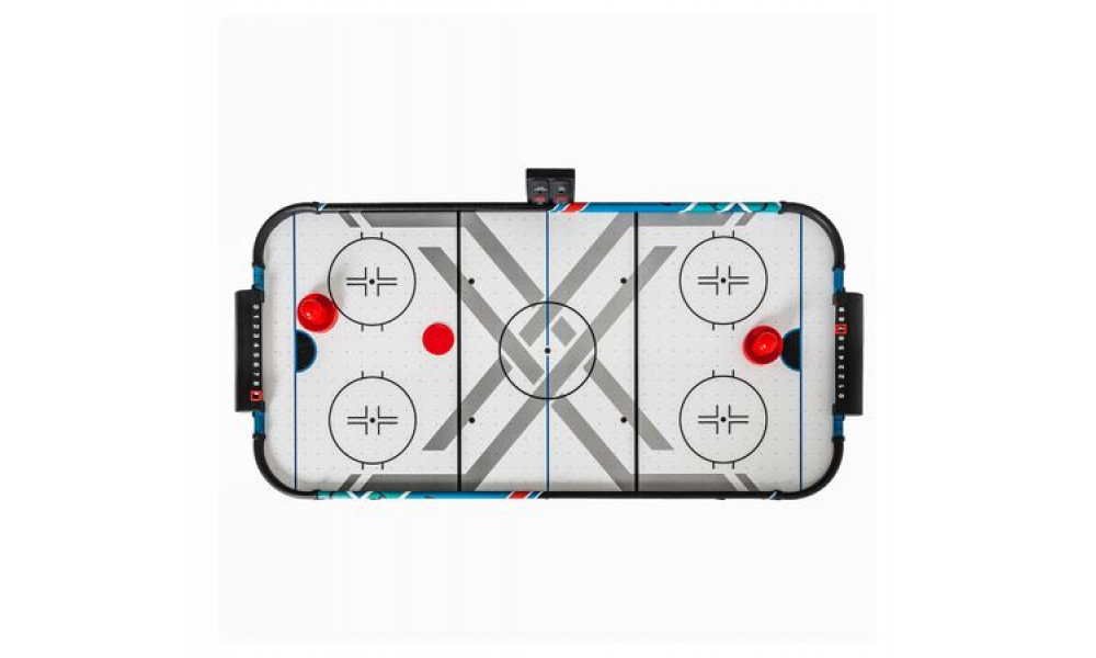 Аэрохоккей SIRIUS оборудован электронным табло для подсчета забитых шайб. И дополнительно возле каждого игрока установлен механический счетчик. Стол комплектуется необходимым для игры набором аксессуаров: 2 биты и 2 шайбы красного цвета.